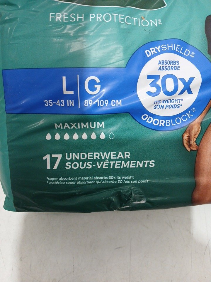 17pk MEN'S DEPEND FRESH PROTECTION UNDERWEAR - LARGE - GREY