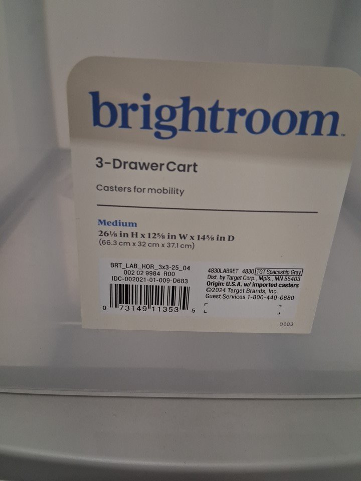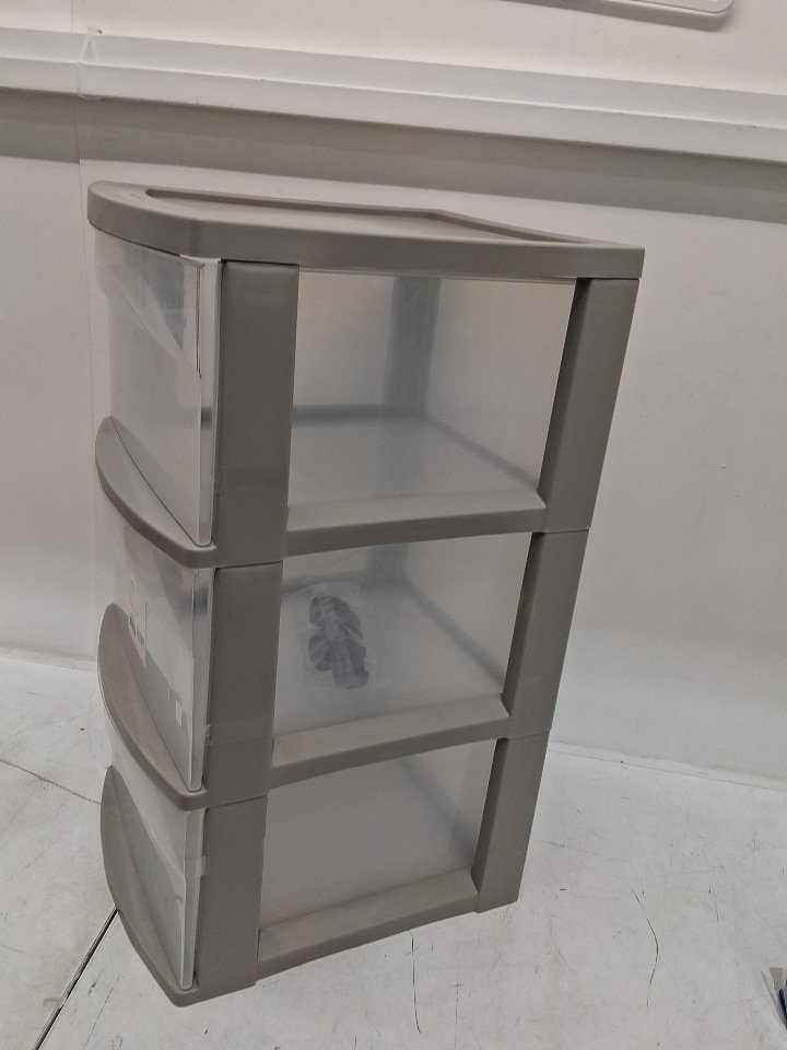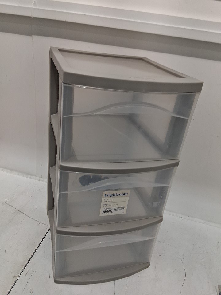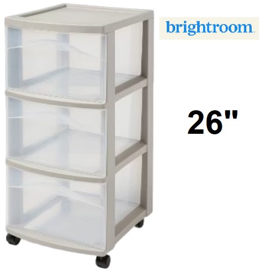 brightroom Plastic ROLLING 3-Drawer Storage Cart ORGANIZER - 26" x 12" - light grey