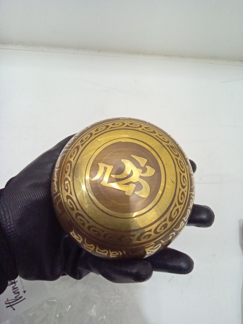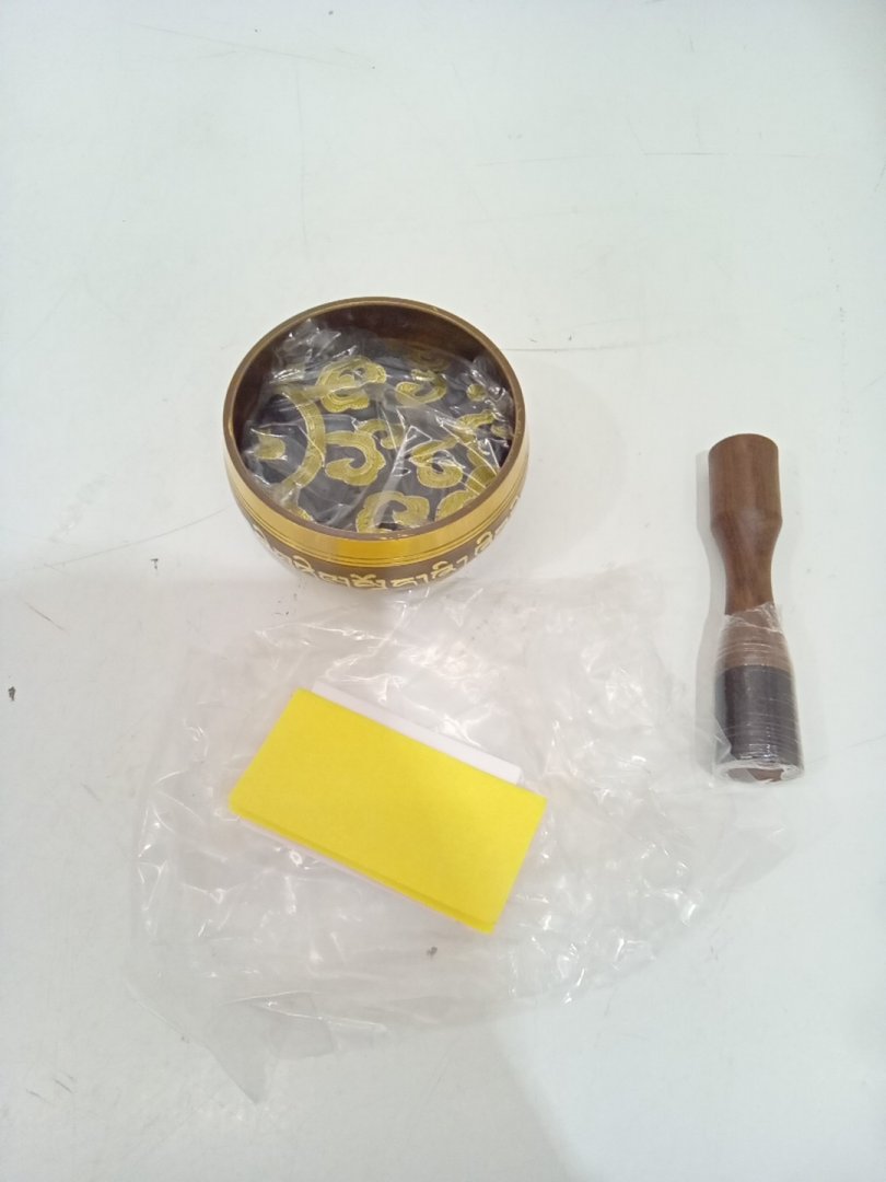 Silent Mind Tibetan Etched Singing Bowl Set with Cushion - Brown/Gold