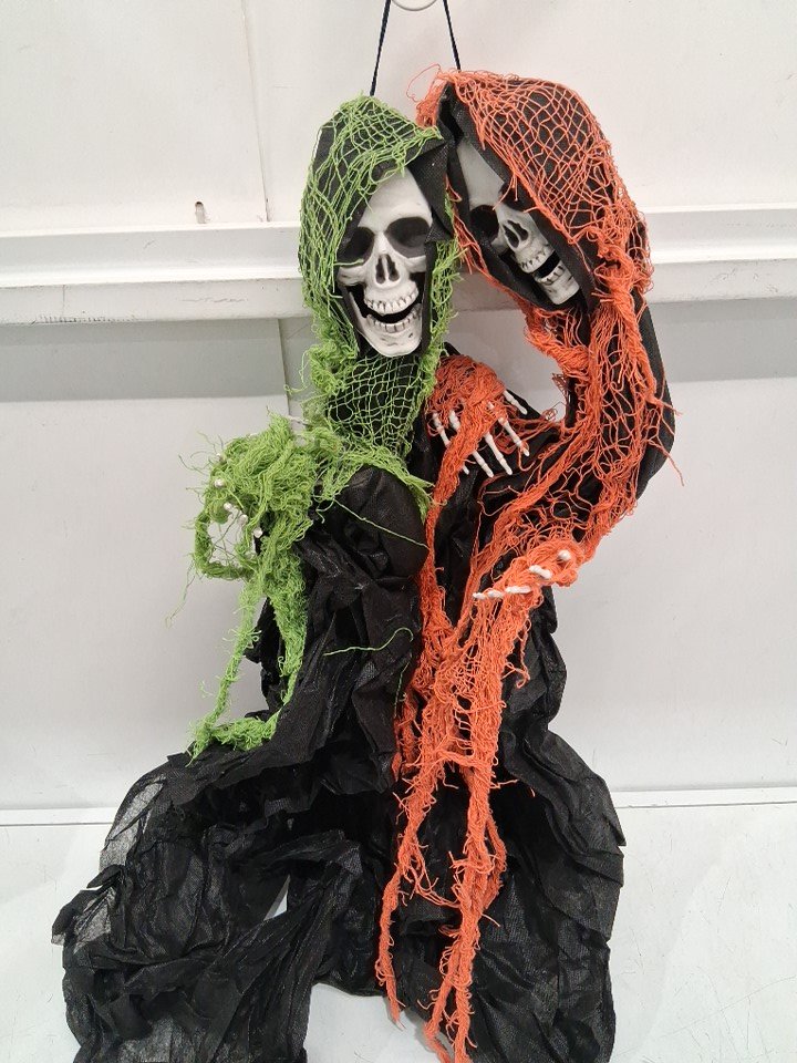 2pk hanging Grim Reapers Halloween Decorations - 11" x 8.5" - green / orange