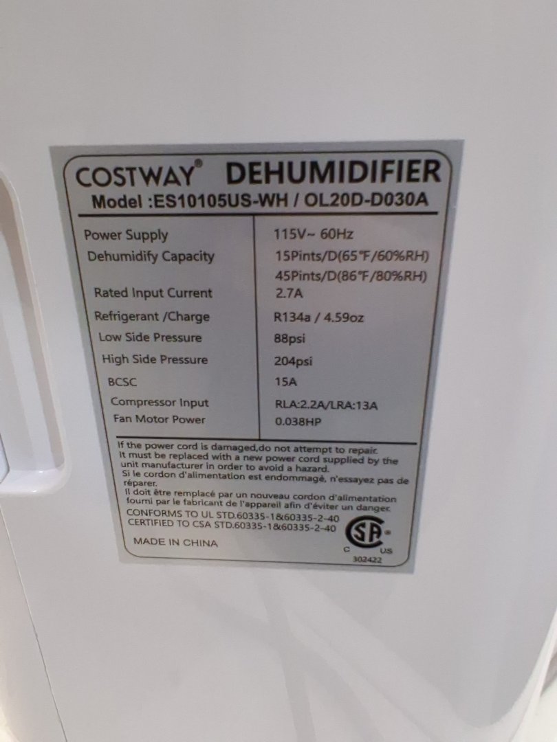 Costway compact dehumidifier for home - 4000 SQ.FT, 1.7gal tank - white - (model: ES10105US-WH)