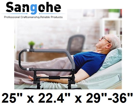 Sangohe Heavy Duty Bed Rail for Elderly and Falling Out of Bed - 25" x 22.4" x 29"-36" - Black - (Model: 504E)