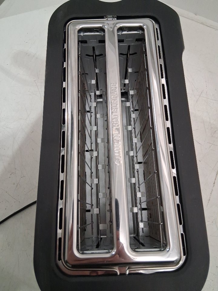 Tested for power. Please note there is some sticker residue found around the toaster, see photos.
