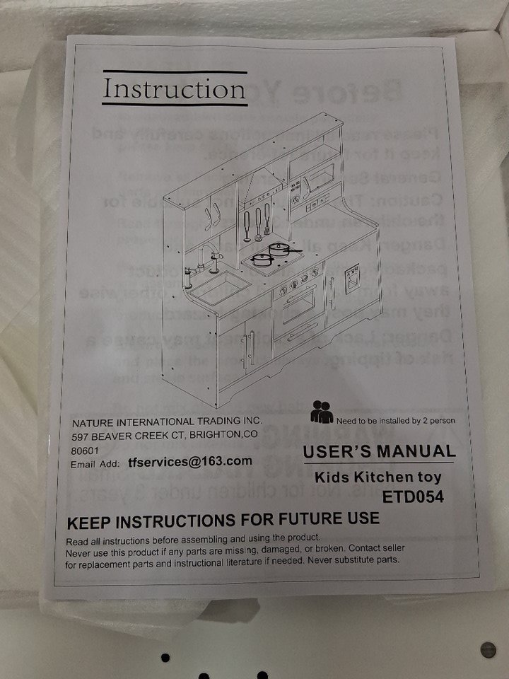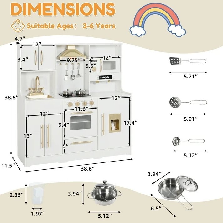 aileekiss kids wooden play kitchen set for ages 3+ - 39" x 11" x 39" - white - (model: etd054wh)