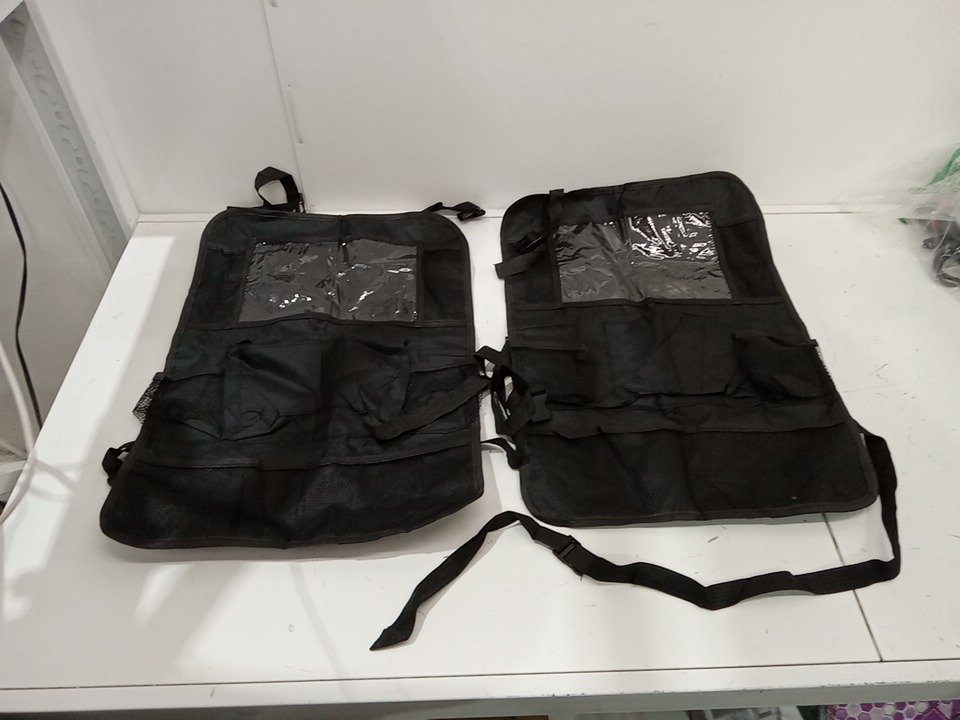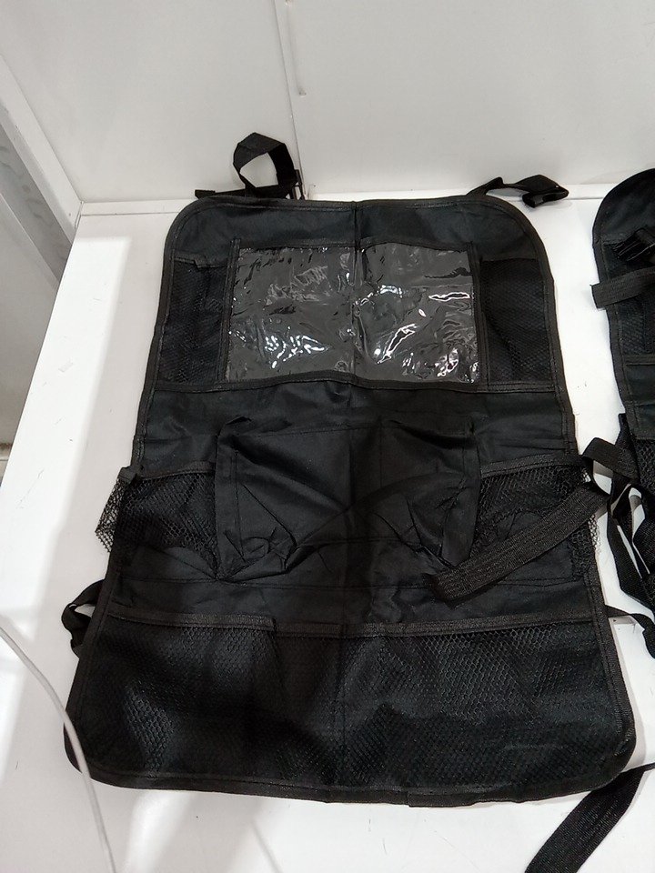 2PK UNIVERSAL CAR BACKSEAT ORGANIZERS WITH 10" IPAD HOLDER AND STORAGE POCKETS - BLACK