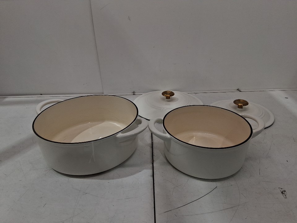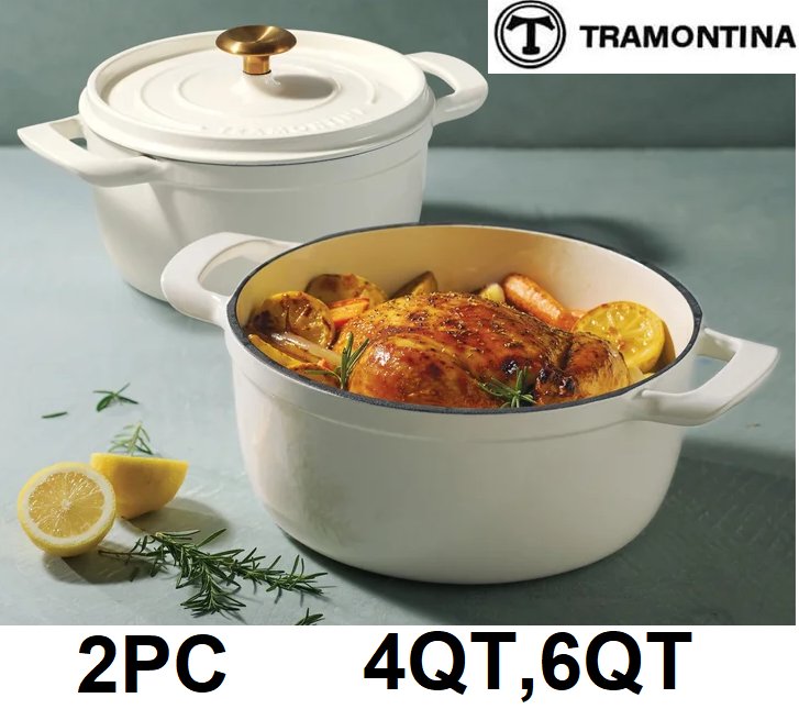 2PC TRAMONTINA 4-quart & 6-quart Enameled Cast Iron Round Dutch Oven - OFF WHITE