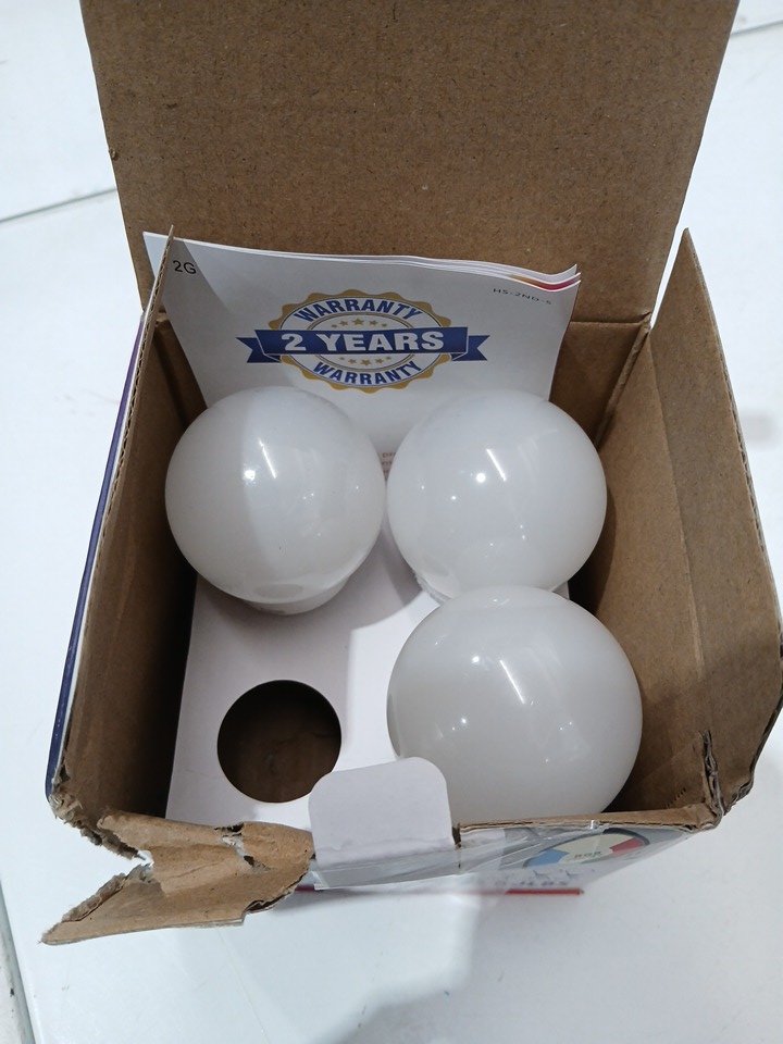 Missing one bulb from 4 pack, making it 3 bulbs total. See photos included