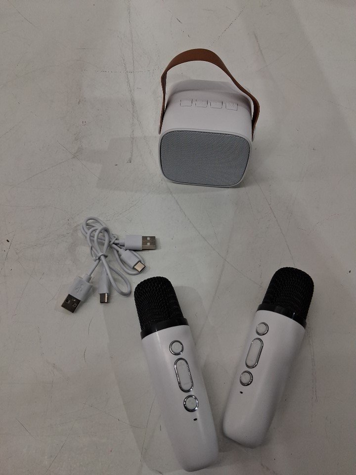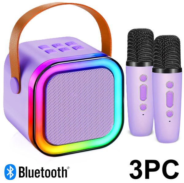 3PC Qupite Bluetooth Mini Karaoke Machine with 2 Microphones with Led Lights - Purple (Model: K12)