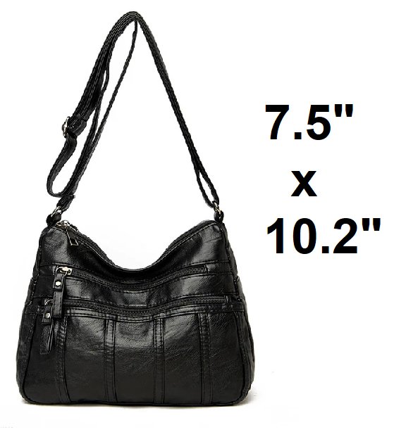 Women's Soft PU Leather messenger bag - 7.5" x 10.2" - Black
