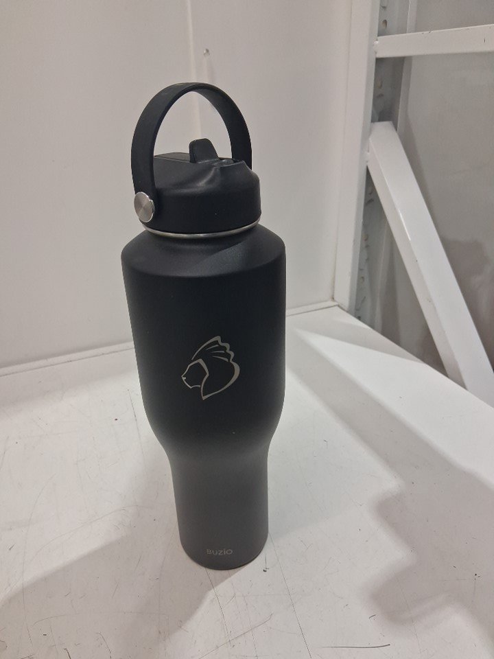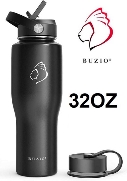 BUZIO STAINLESS STEEL INSULATED WATER BOTTLE W/ STRAW LID AND FLEX CAP - 32oz - BLACK