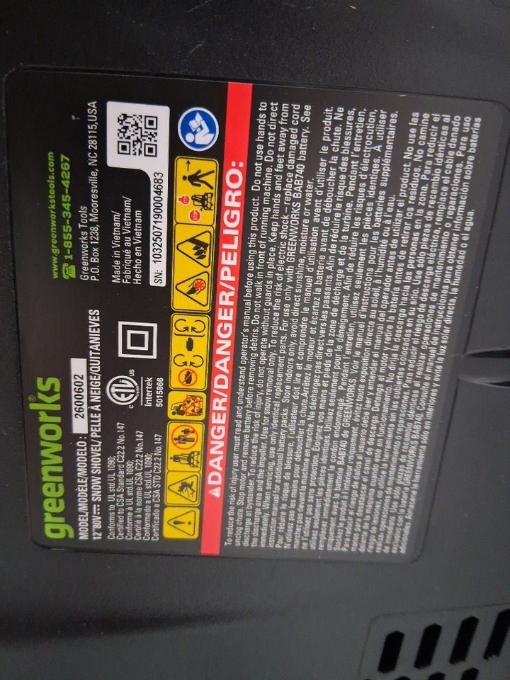 GREENWORKS PRO 12" 8A CORDED ELECTRIC SNOW SHOVEL - GREEN (MODEL: 2600802)