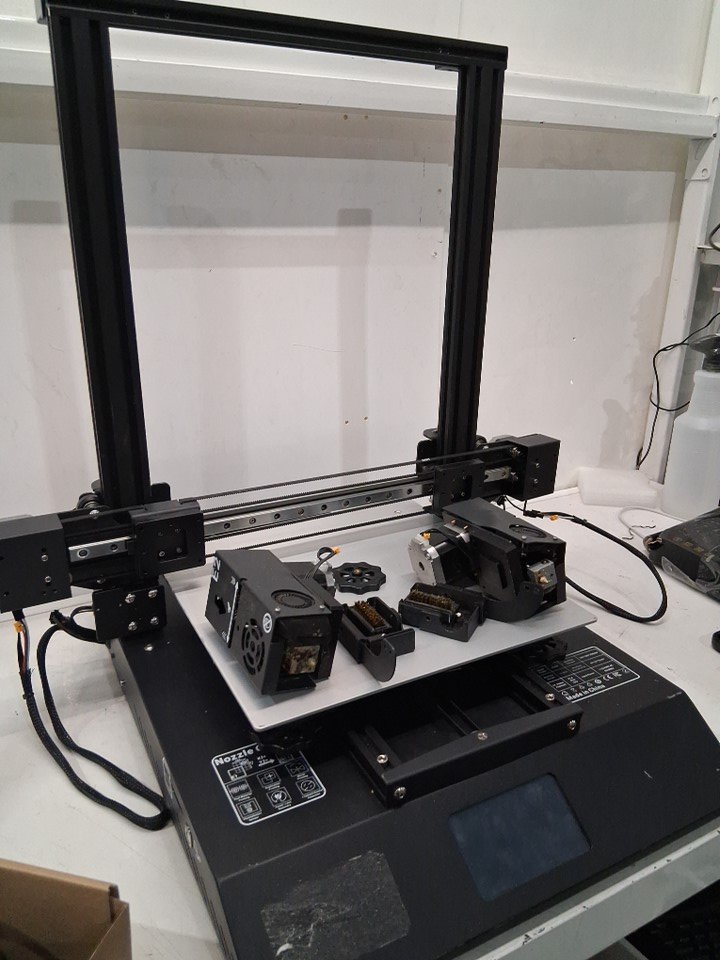 + Item has a bent frame, bent hot ends, bent plugs for the hot end + + Item is missing hardware, parts and has scuffs/scratches all around it + + Item has several dents around the unit + + This machine is to be used as PARTS ONLY as the frame is bent and not salvageable + + The bed does heat but we were unable to test any other components +