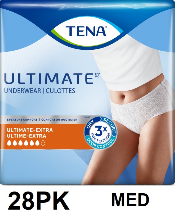 28PK WOMENS TENA ULTIMATE PROTECTION/ODOR CONTROL UNDERWEAR - MEDIUM