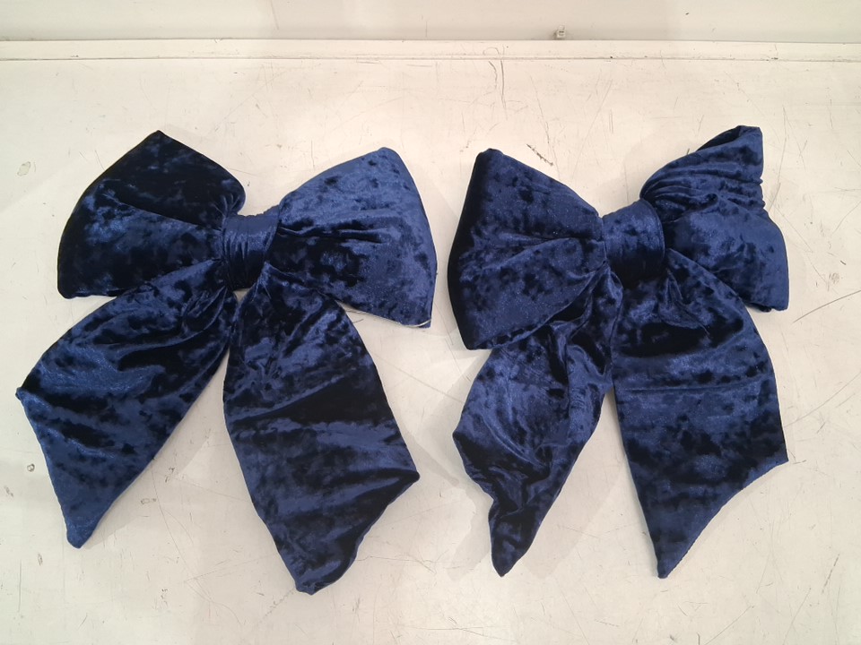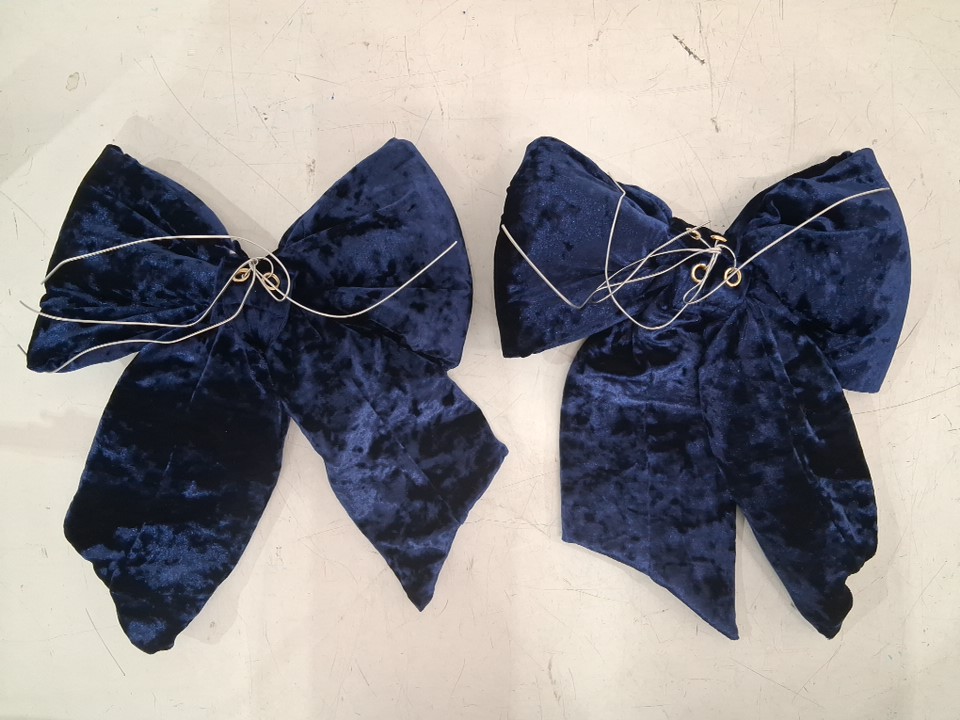 2PK KI Store Large Plush Velvet Bows with Wire Ties - 12" x 16" - Blue
