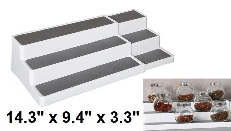 nigbo 3 tier expandable spice rack organizer for countertops/cabinets - 14.3" x 9.4" x 3.3" - white/grey (model: id4382c)