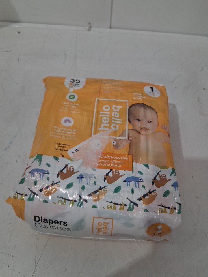 35pk hello bello hypoallergenic plant derived disposable baby diapers - size 1 - sleepy sloths (70 diapers total)