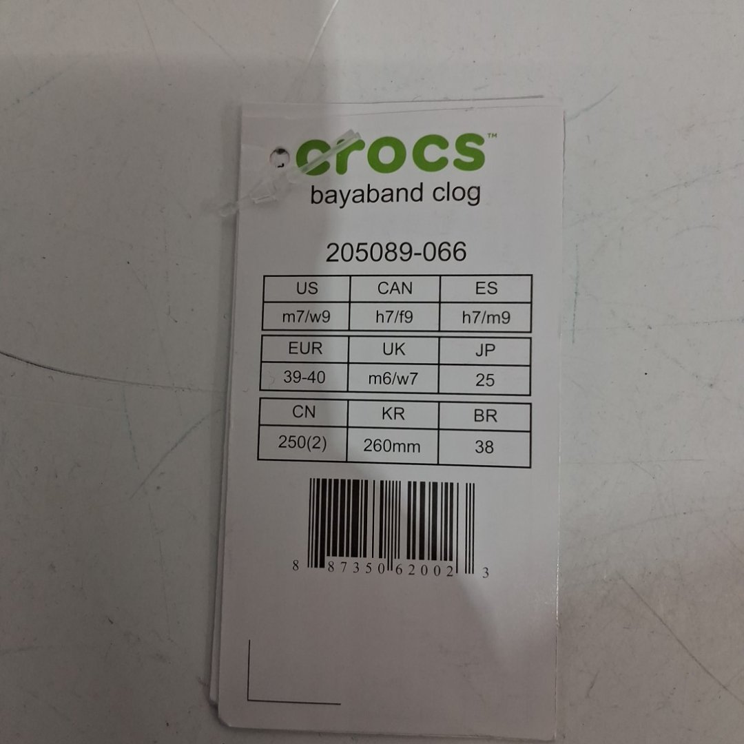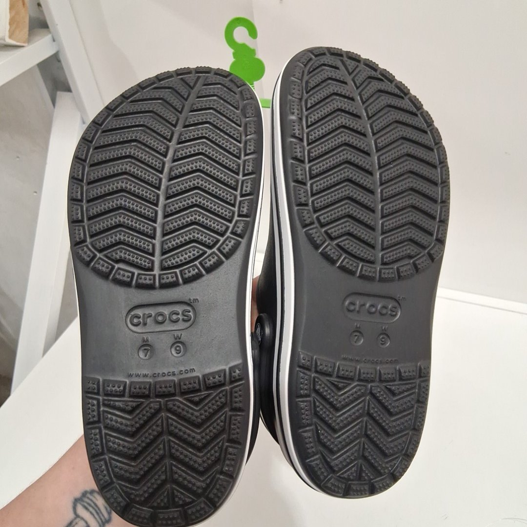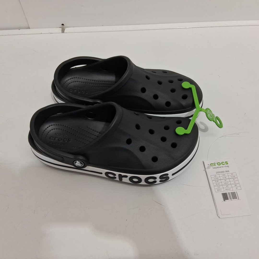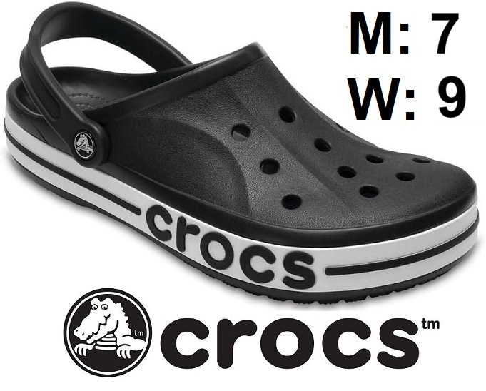 UNISEX ADULT CROCS BAYABAND SLIP-ON CLOG SHOES - WOMEN'S 9 MEN'S 7 - BLACK/WHITE