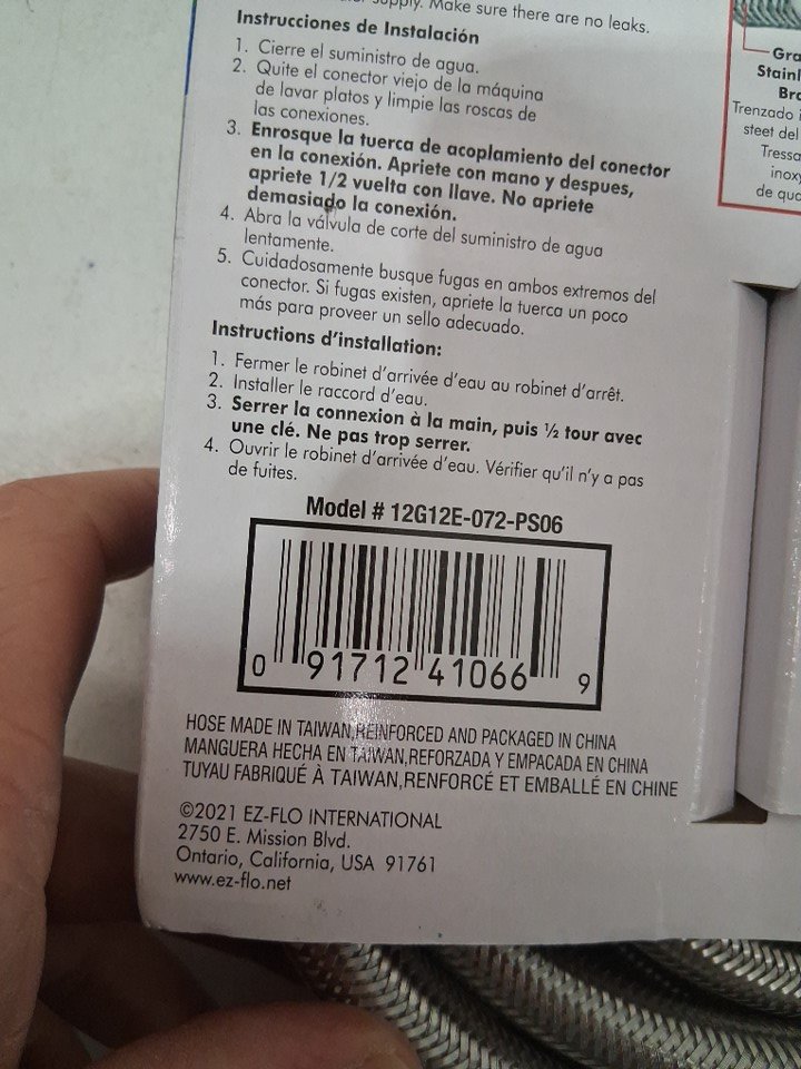 2pk EASTMAN STAINLESS-STEEL WASHING MACHINE HOSE CONNECTors, 6FT (1.8M) (MODEL:12G12E-072-PS06)
