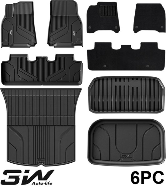 6PC 3W AUTO-LIFE All-Weather TPE Full Set Floor Liners & Cargo Liner - for Tesla Model Y 2020-2025 - BLACK