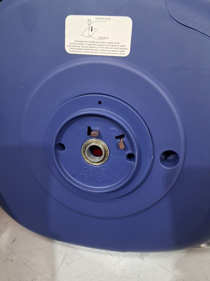 item was tested for basic power. please note the item is missing the charging cord and the front wheel. both are replaceable. see photos.