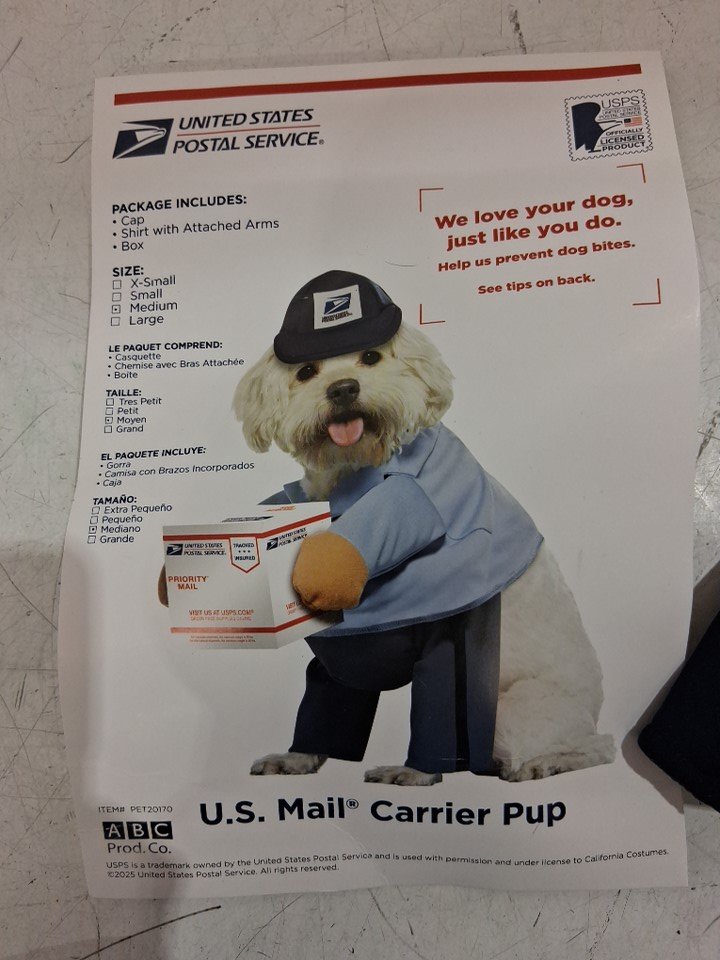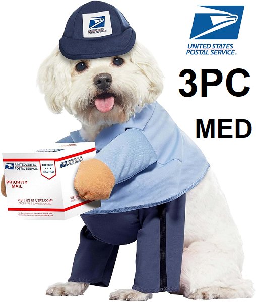 3pc usps united states postal service u.s. mail carrier pup Halloween costume - medium - blue