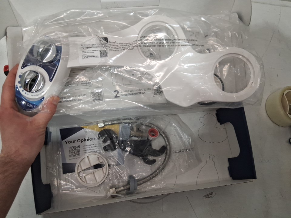 LUXE COLD WATER TOILET BIDET - WHITE/BLUE (MODEL: NEO185BLUE)