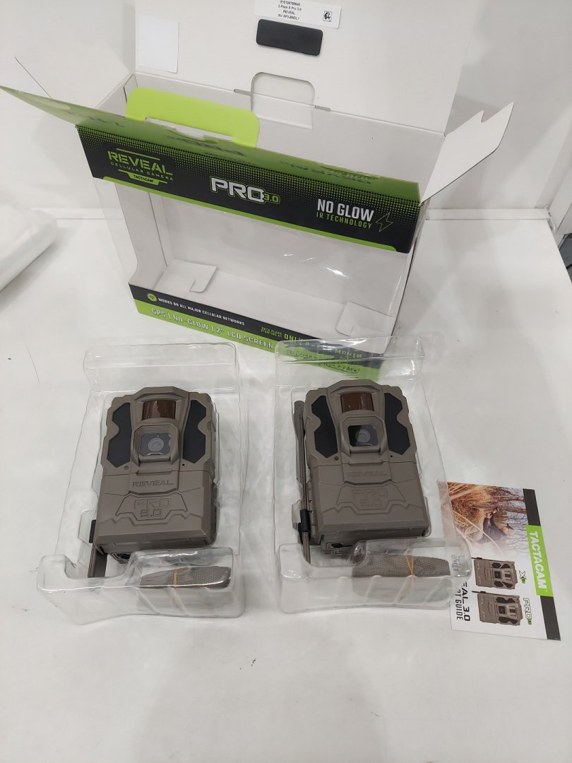 2pk Tactacam Reveal Cellular Trail Camera pro 3.0 with 5.5gb internal storage & 1080p fhd video - works with USA CELLULAR PROVIDERS, APP & LOCALLY WITH SD CARD *NOT INCLUDED* (model: rv-xp3-bndl1)