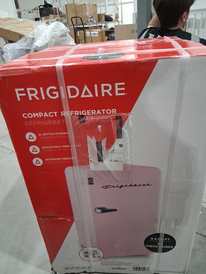frigidaire compact rounded retro premium mini fridge - 3.2 cu.ft - pink (model: efr372-pink-6com)