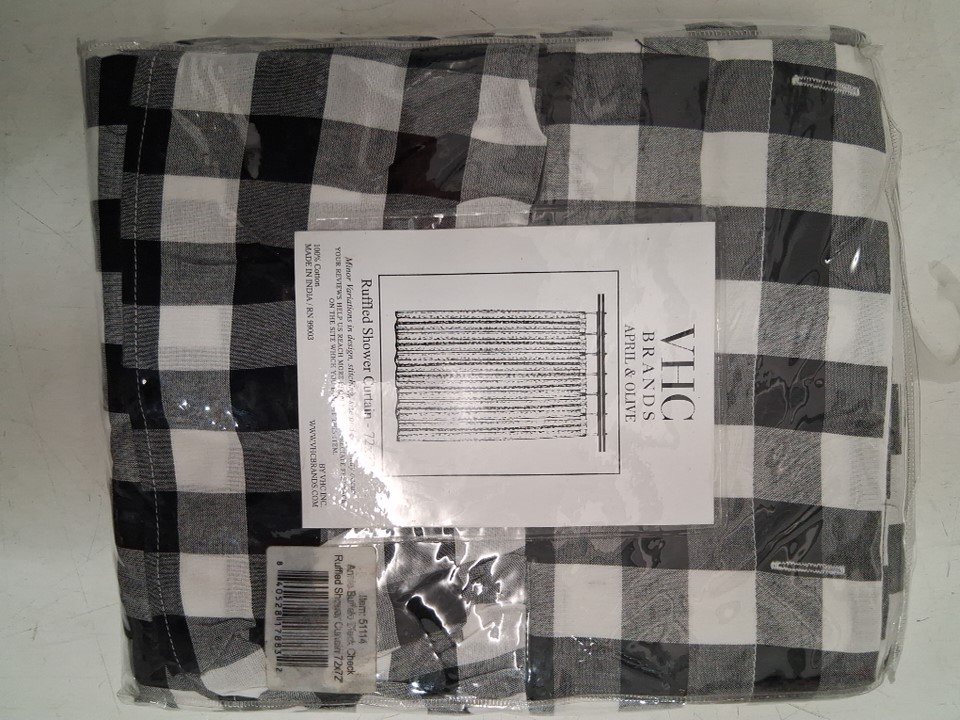 VHC Brands Annie Buffalo Ruffled Farmhouse Shower Curtain - 72" x 72" - Black/Check (Model: 51114)