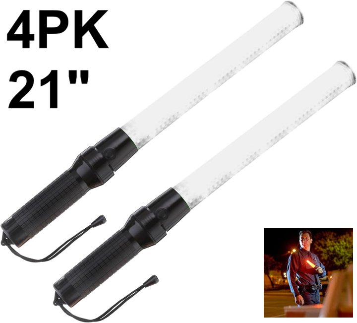 4PK Patikil LED Traffic Wands with 2 Flashing Modes - 21" - White