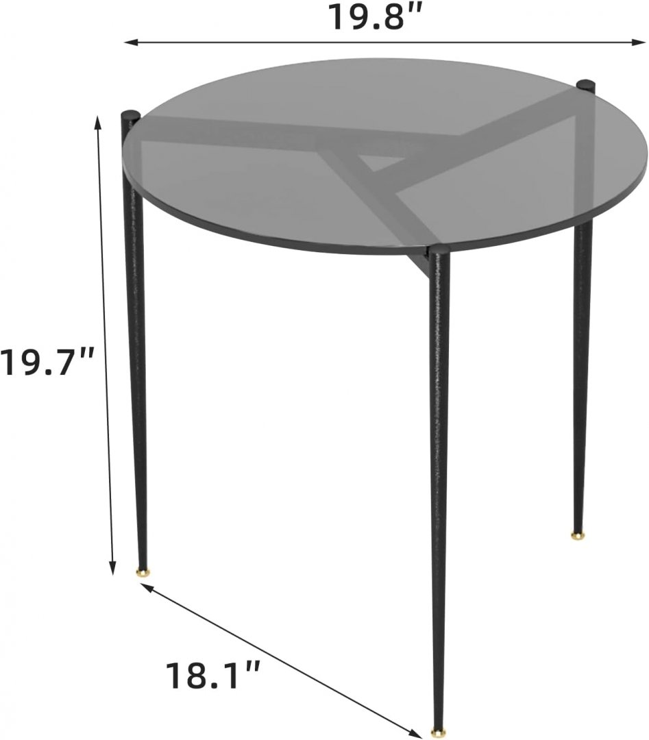 Artloge Modern round End Table with Glass Top - 19.8" x 19.7" - grey (model: JJ-XZ322)