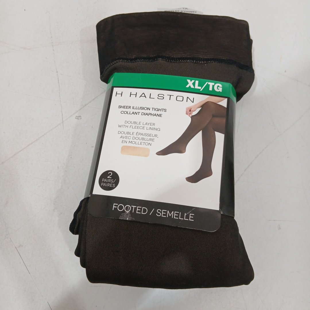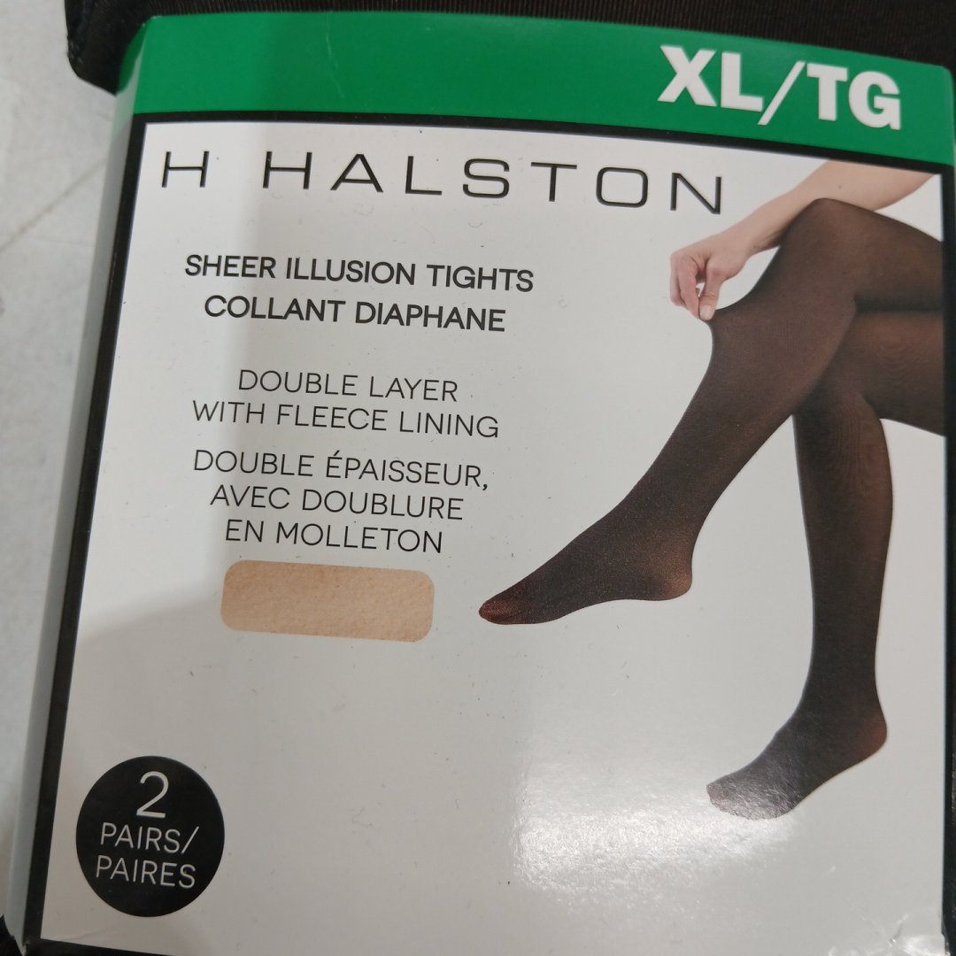 WOMEN'S 2PK HALSTON SHEER ILLUSION TIGHTS, FOOTED - DOUBLE LAYER WITH FLEECE LINING - XL (MODEL: 1925490)