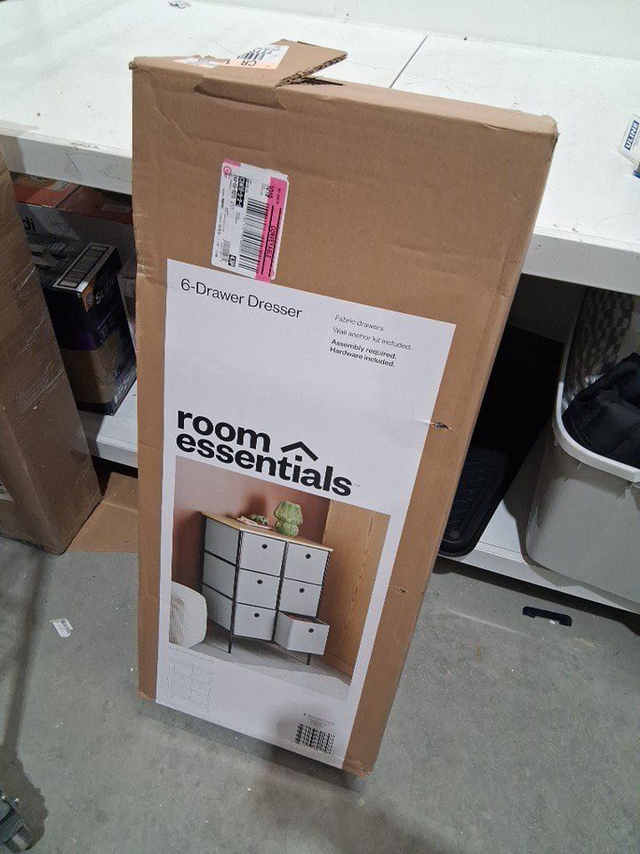 Room essentials vertical 6 drawer fabric bin dresser - 38" x 26" x 15" - Gray w/ natural wood top - (model: bd-1002-nat)