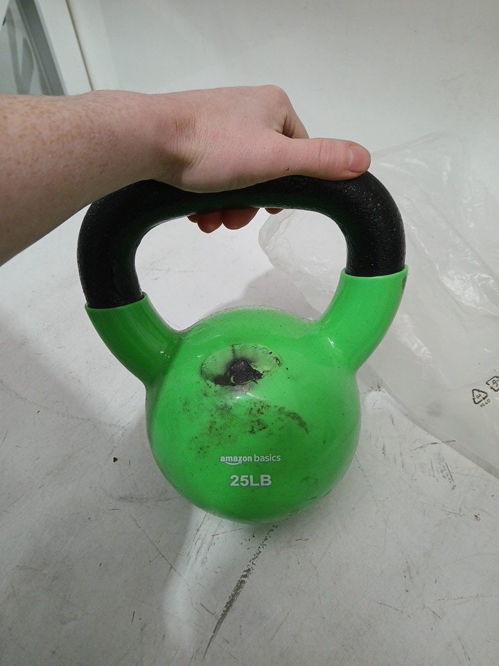 Amazon Basics Vinyl Coated Cast Iron Kettlebell Weight - 25lbs - GREEN