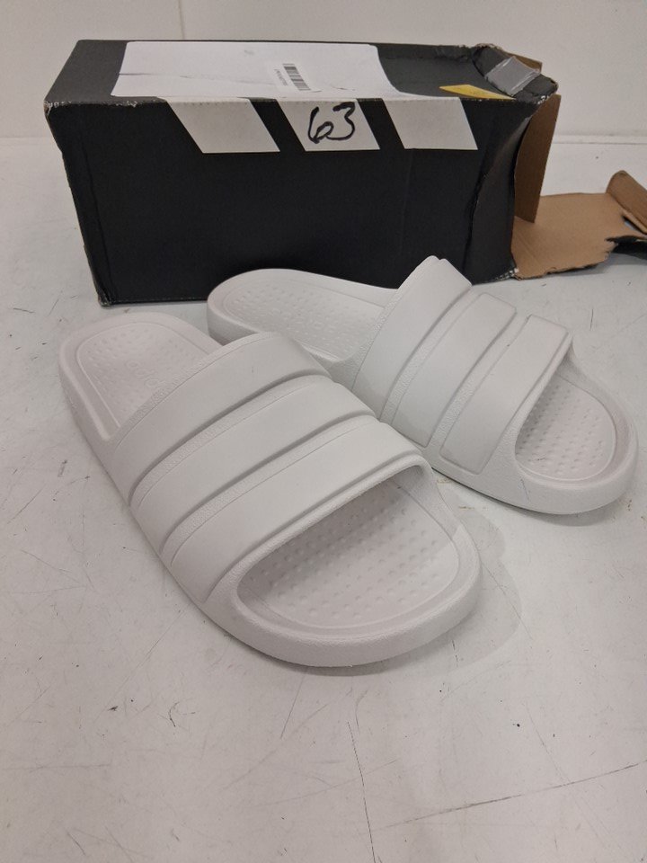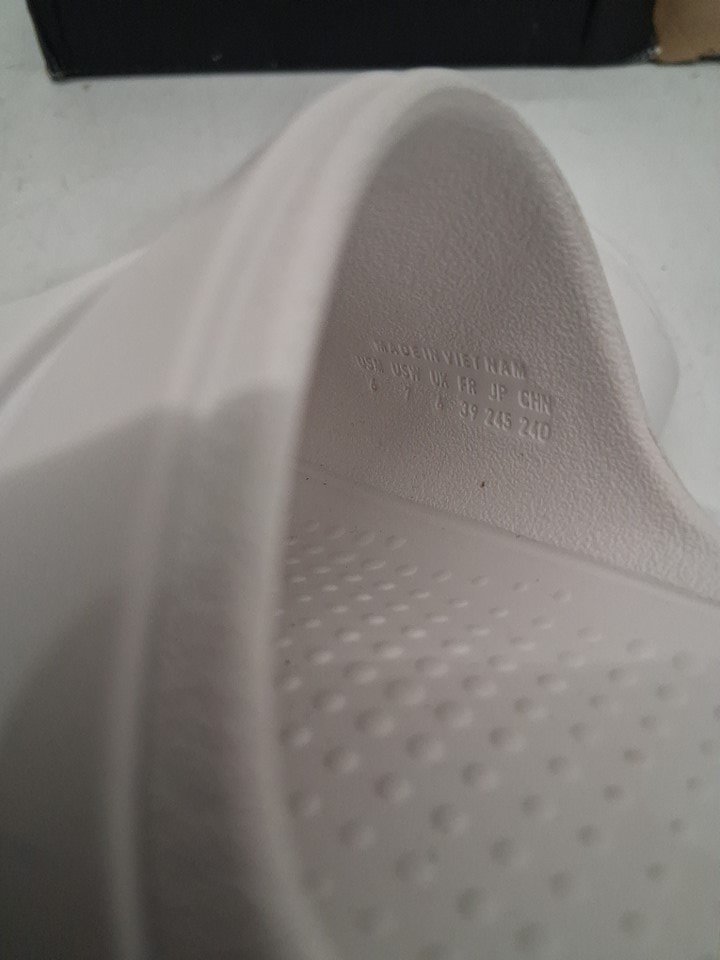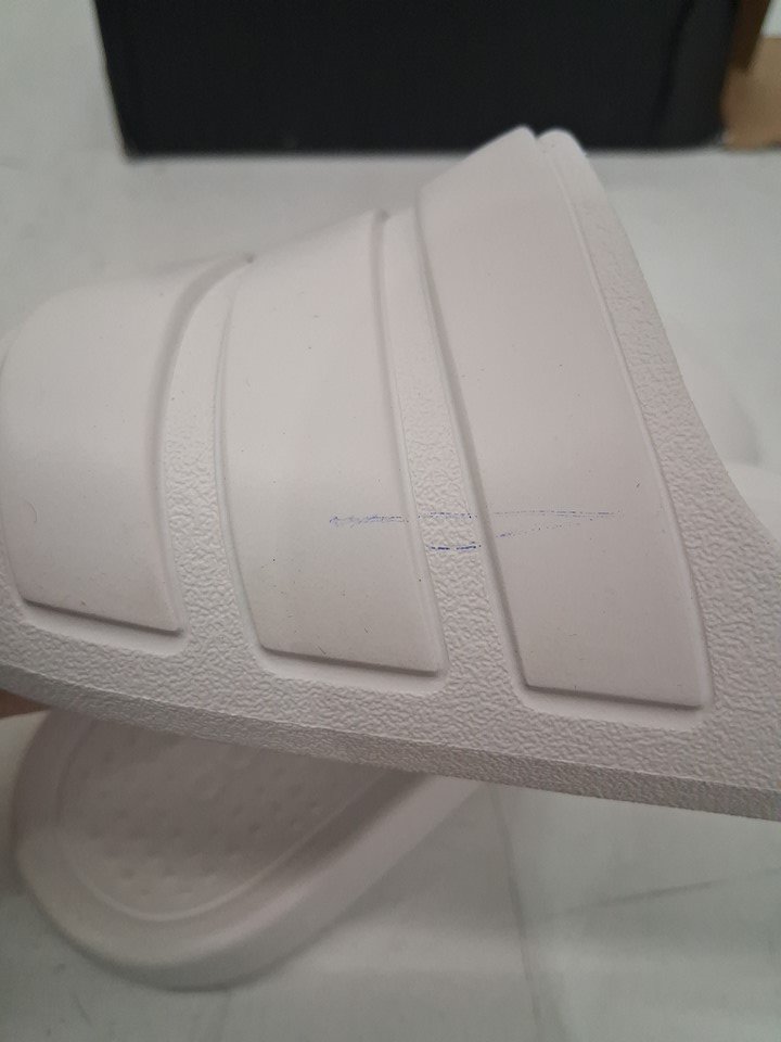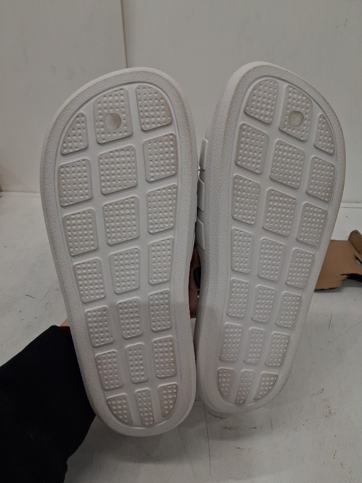 Soles of slides have visible dirt discoloration and have pen markings on side