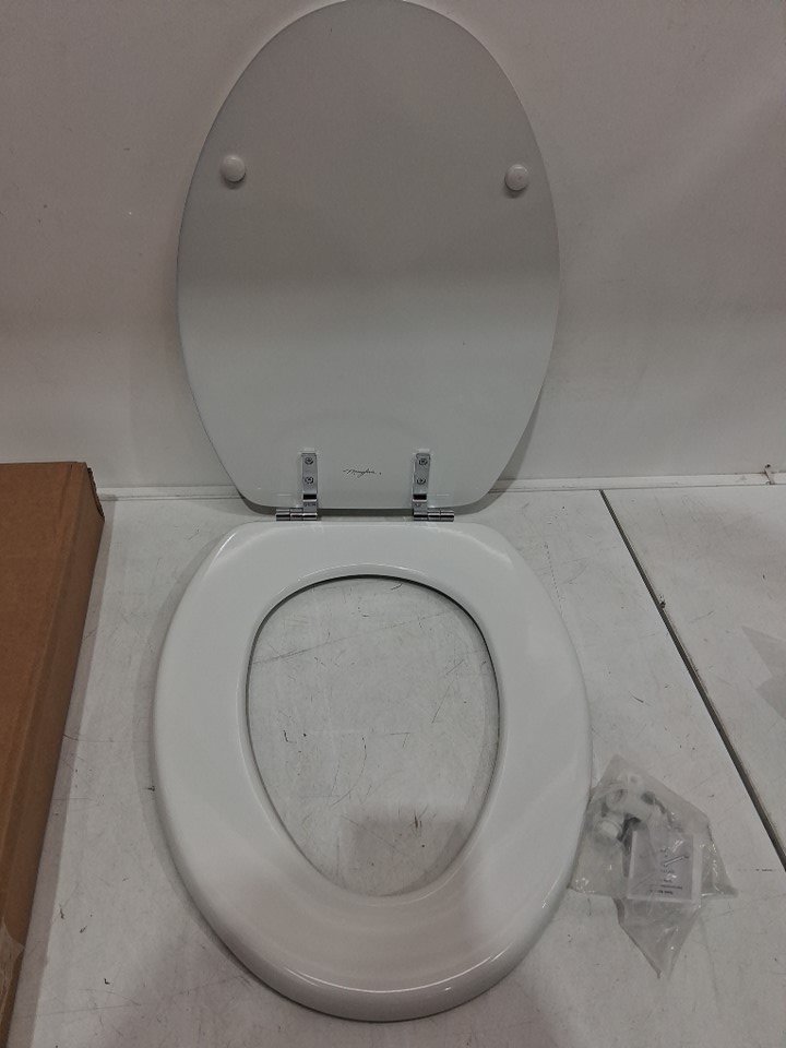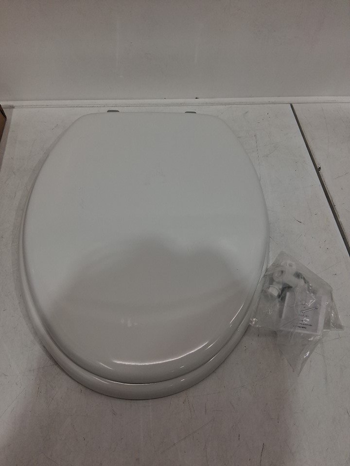 MAYFAIR BY BEMIS EDGEWATER DURABLE 18.5" ENAMELED WOODEN ELONGATED TOILET SEAT - WHITE (MODEL: 1844CP000)