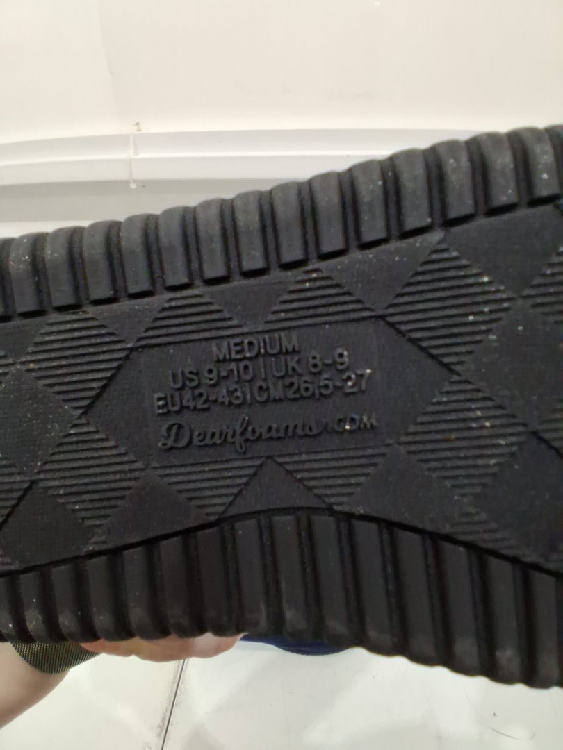 Item shows signs of previous use such as dirt/dust/debris on sole of shoes.