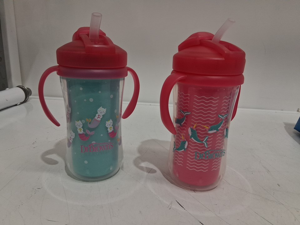 2pk dr browns milestones INSULATED straw cup - 12+ months - 10oz - pink/blue
