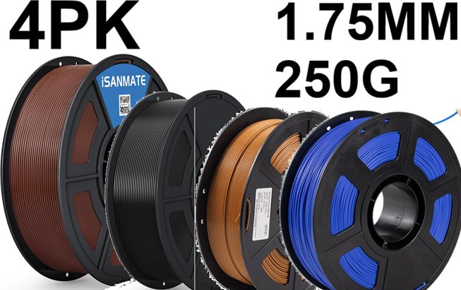 4pk isanmate 3d printer filament pla carbon fiber bundle - 1.75mm - black/brown/coffee/blue