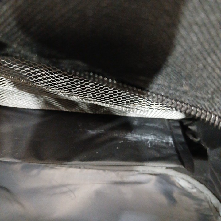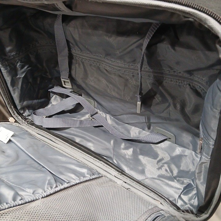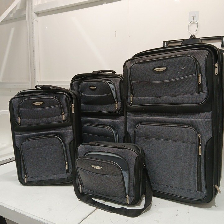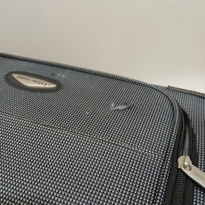 there is some loose string/pilling on the front of the largest suitcase there is pet fur on all of the items and there is a white stain/marking in the small bag