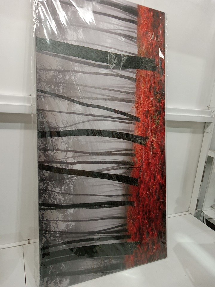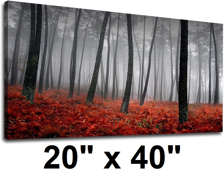 Misty Autumn Forest Landscape Wall Art Canvas - 20" x 40" - Grey / Red