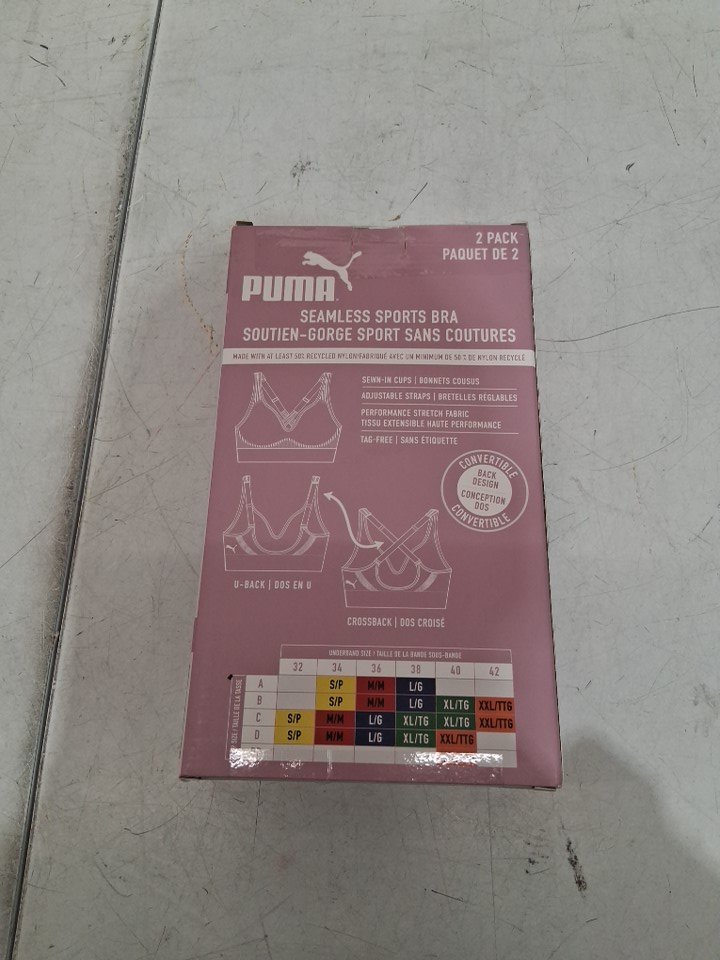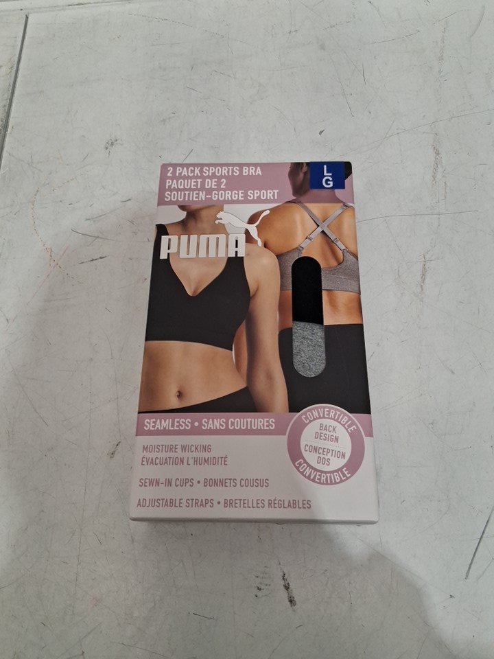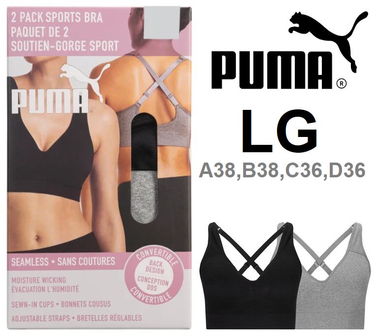 2pk women's PUMA Performance Seamless Sports Bra - large - black/grey (MODEL: 1943652)