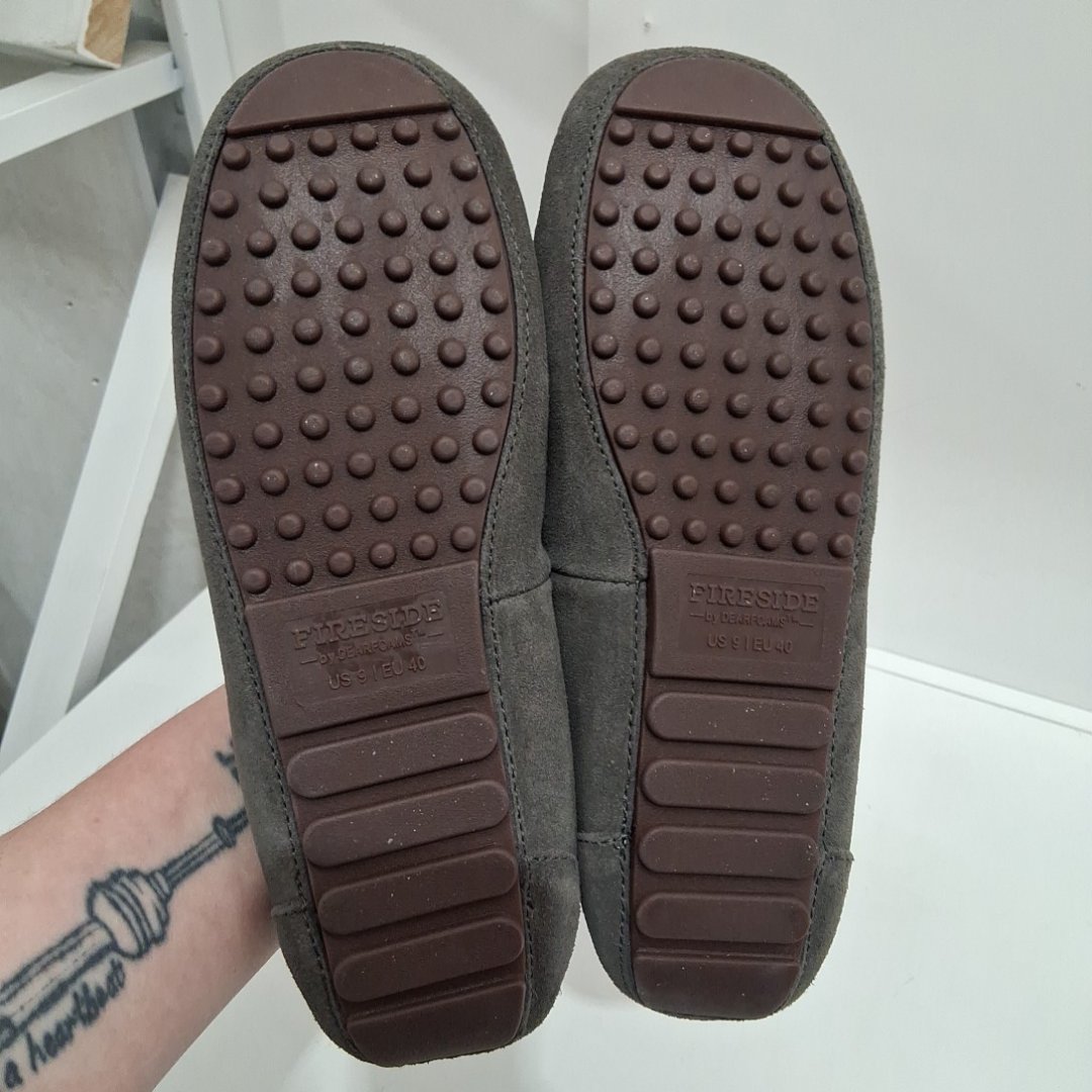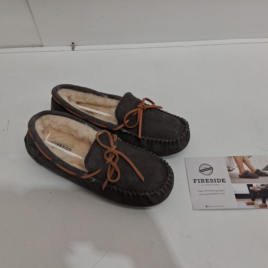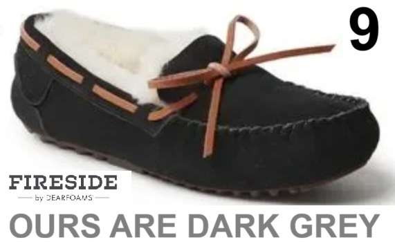 WOMEN'S Fireside By Dearfoams Mel Water Resistant Genuine Shearling Moccasin Slipper - 9 - DARK GREY
