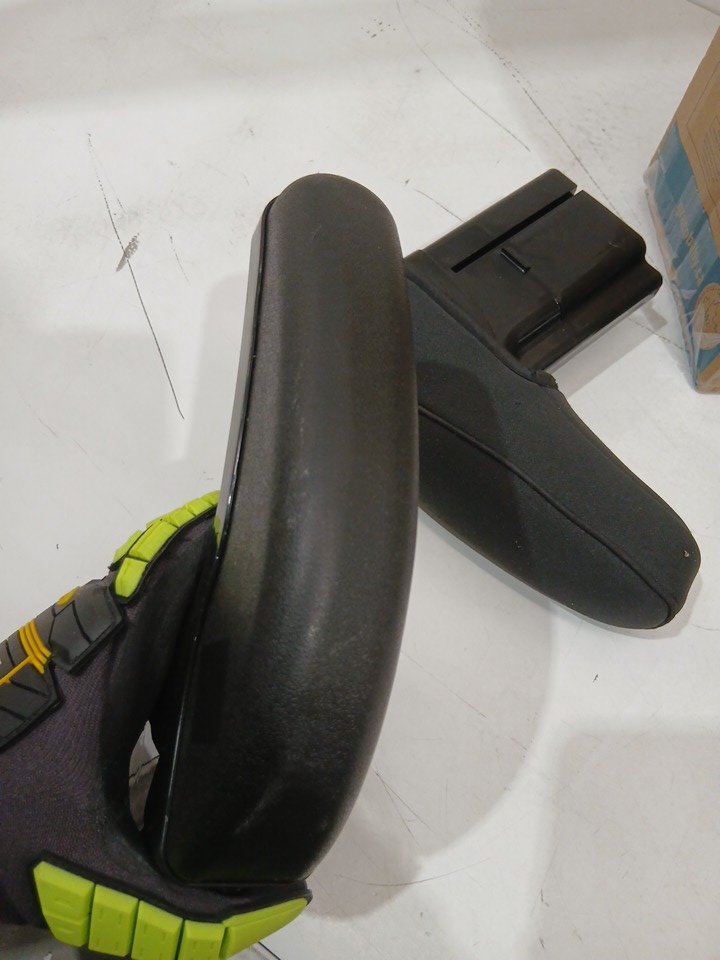 appears lightly used due to crumbs and a personal smell on the fabric. one of the arm covers is missing and there are some scratches on the armrest as well.