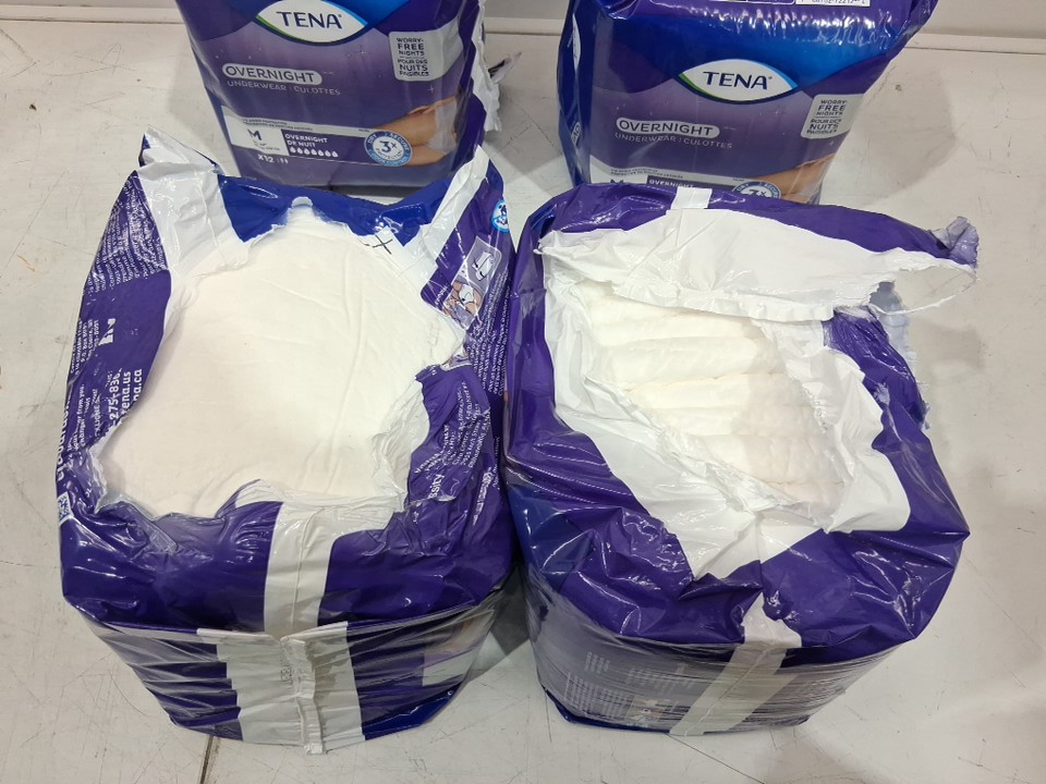 Two packages are torn, and two diapers are missing from them. Total diapers: 46.