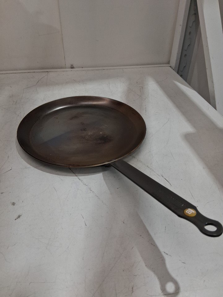 The pan has some stains and grease from previous use; see photos for details.