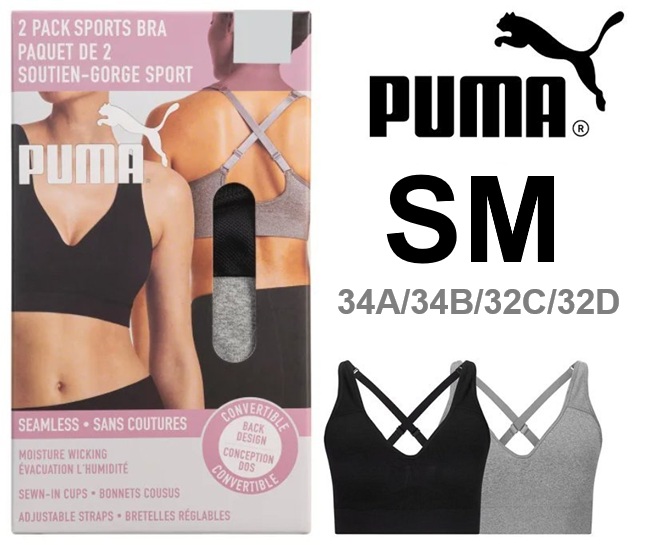 2pk women's PUMA Performance Seamless Sports Bra - Small - black/grey (MODEL: 1943652)