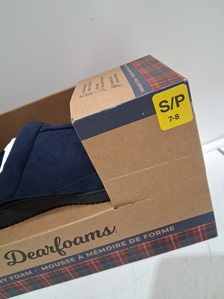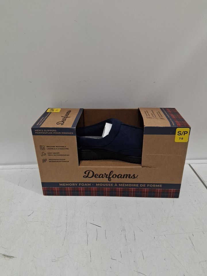 MENS DEARFOAMS MEMORY FOAM SLIPPERS - SMALL 7/8 - NAVY BLUE (STYLE: 1899650)