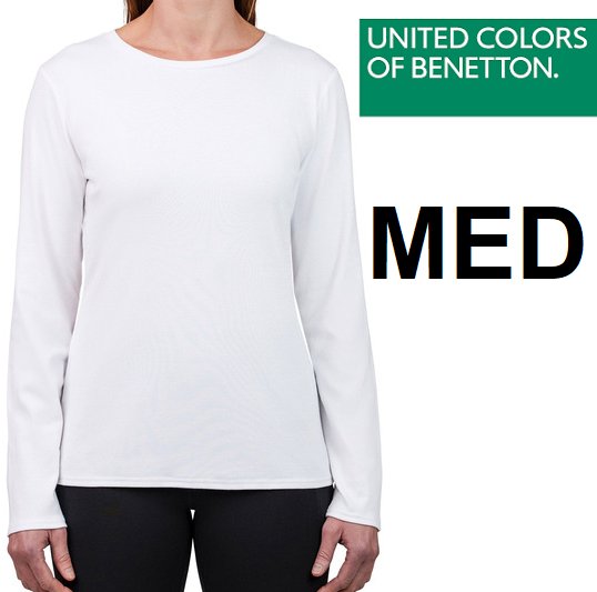 women's United Colors of Benetton Long Sleeve Supima Cotton Tee - medium - white (STYLE: 1805195)