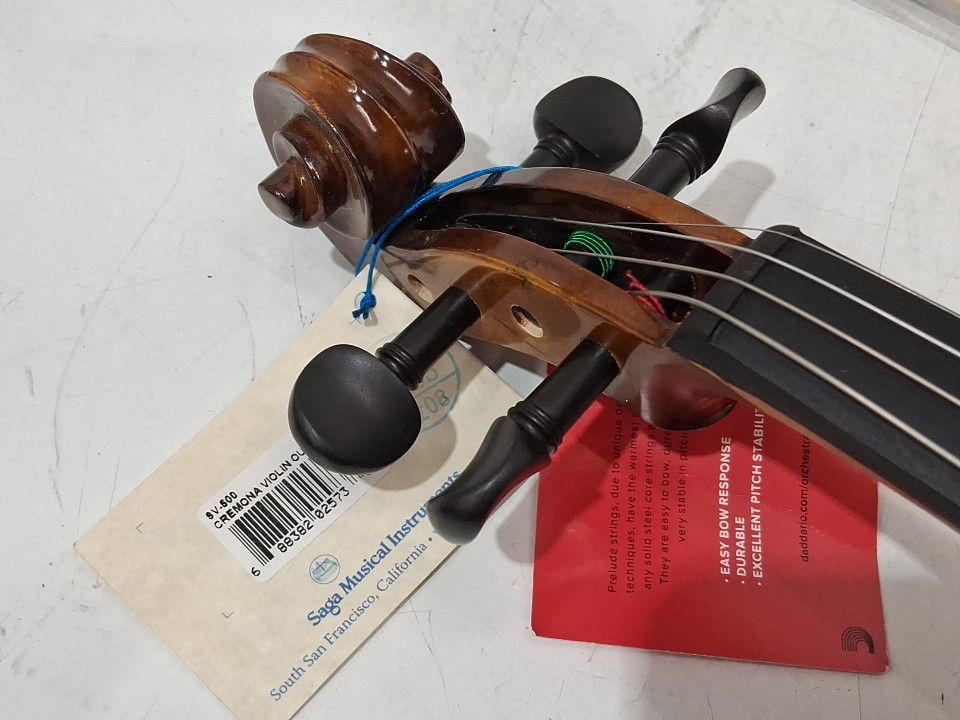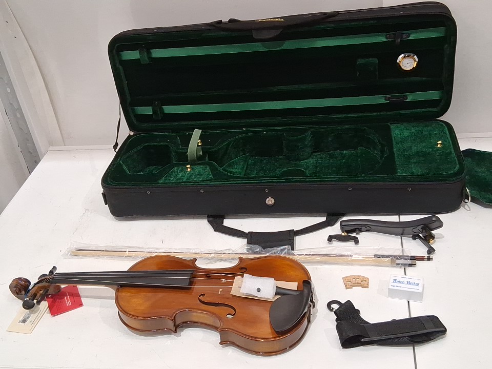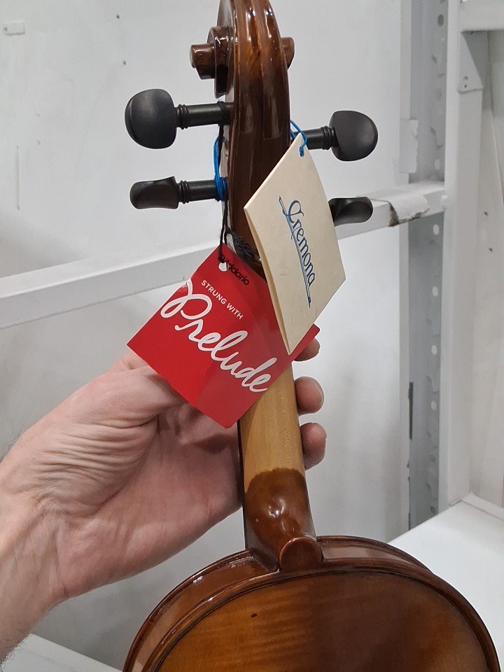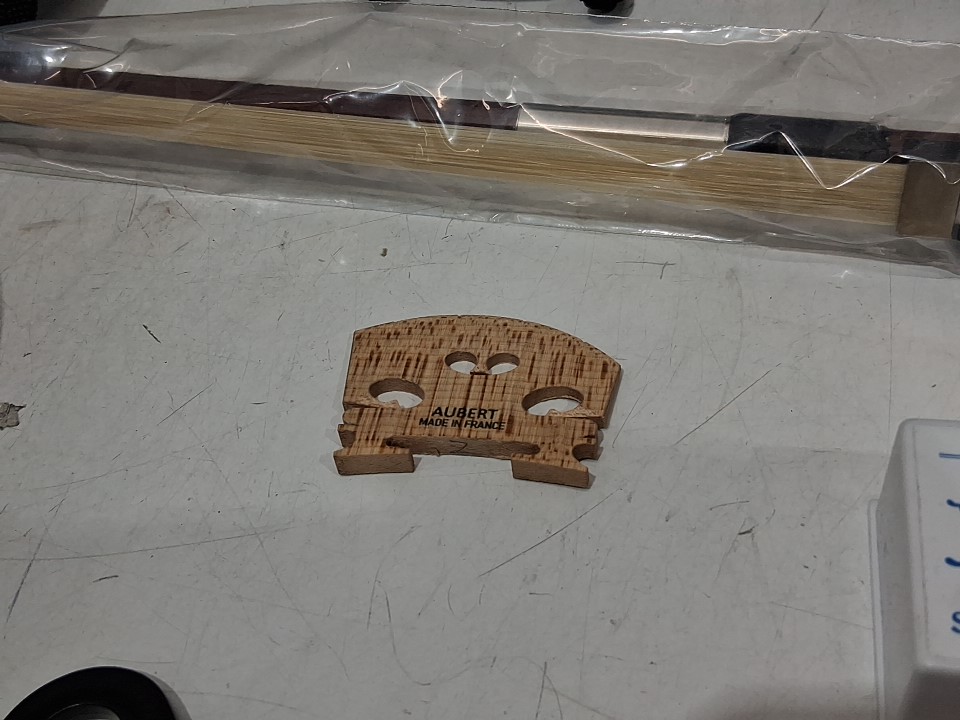 Item's arrived with its bridge knocked out of place and its soundpost loose internally which will likely require a specialist to repair, see photos.